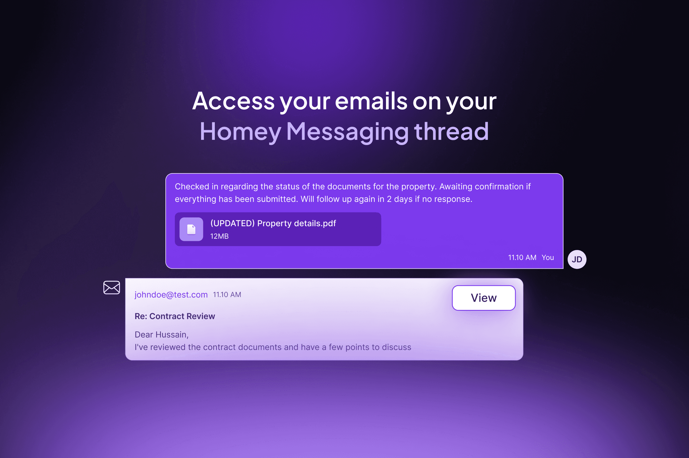 We are cutting down manual data entry. Homey now monitors your designated company shared mailbox and pulls inbound emails directly into the platform.
