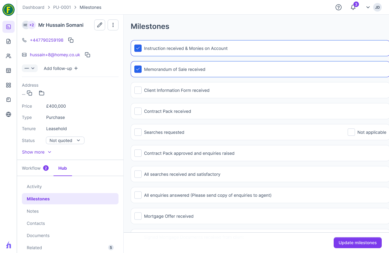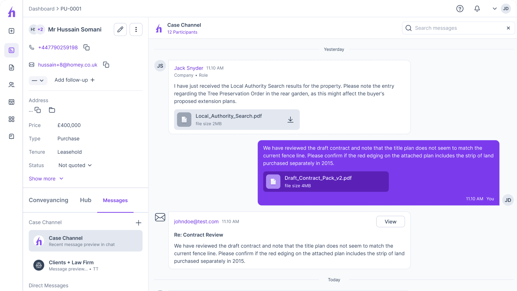 See exactly when searches are ordered, enquiries are answered, and mortgage offers are processed without ever having to chase the lawyers.